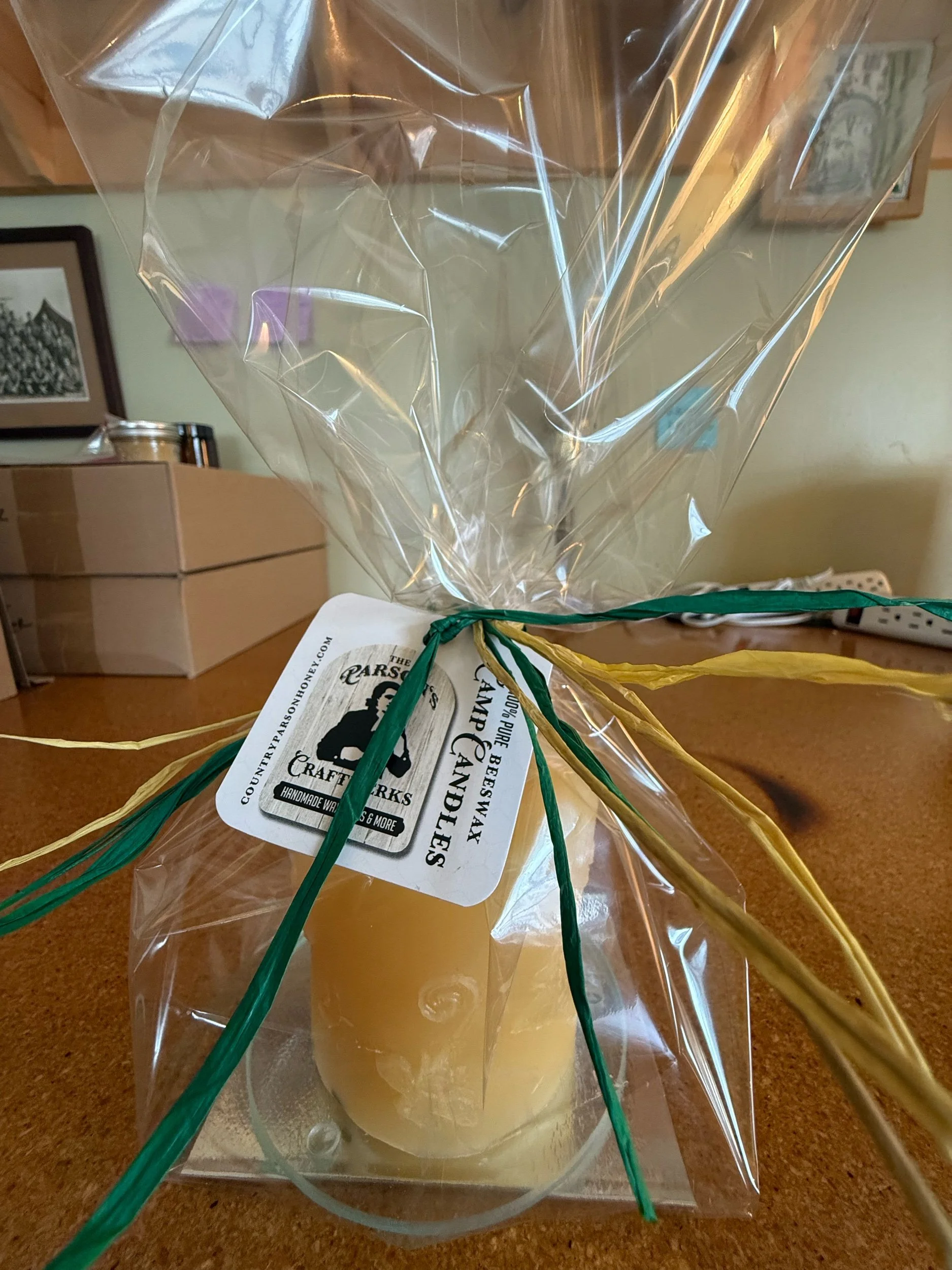 Ah, the magic of beeswax; among its other unique properties, it’s almost lighter than air, which is why we like to use it in so many of our products! Clean-burning Beeswax candles generally burn more efficiently than other types, like soy-based or paraffin-based, which drip and smoke when burning and even after they’ve been extinguished. Beeswax is an enhancement to so many of the products we hand-make at The Parson’s Craftwerks. Its anti-bacterial and anti-microbial properties are the reasons our Beeswax Food Wrap works to keep foods fresh without conventional plastic wraps.
